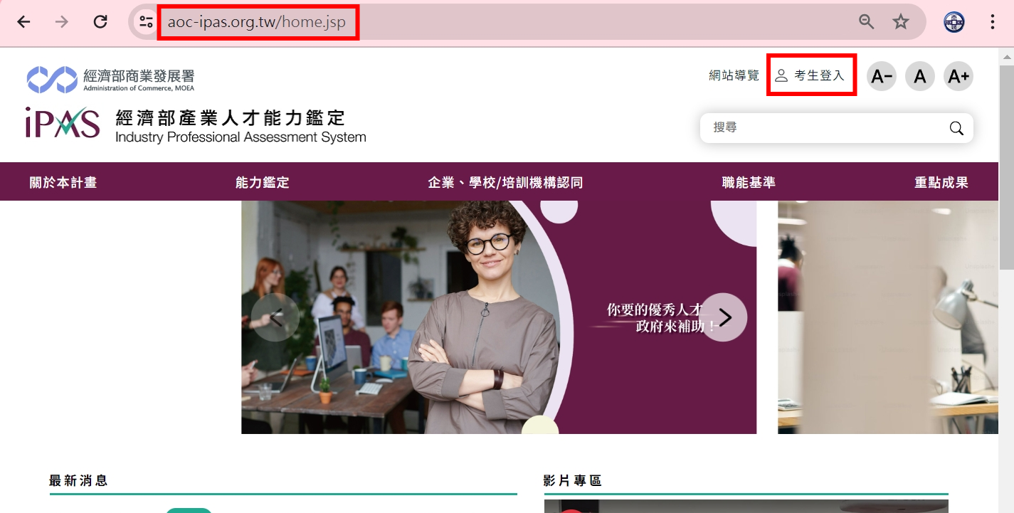 - 團體報名考生:帳號為您的email信箱,密碼預設為Aa!